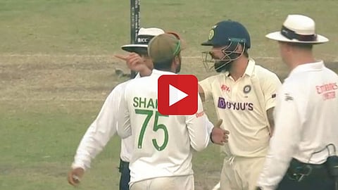 कोहली बाद झाल्यानंतर तो बांगलादेशी खेळाडूशी मैदानातच भिडला. बांगलादेशच्या तैजुल इस्लाम याने कोहली बाद झाल्यानंतर त्याच्याबद्दल काहीतरी अनुद्गार काढले. त्यावर कोहली भडकला. त्याच्या दिशेने कोहली पावलं टाकू लागला. पण बांगलादेशचा कर्णधार शाकिब अल हसन आणि दोन्ही पंचांनी कोहलीकडे येत मध्यस्थी करून विराट कोहलीला थांबवलं. त्यानंतर विराट शाकिबला काहीतरी सांगत असल्याचं दिसलं. त्यानंतर पंचांनी विराटला पव्हेलियनकडे जाण्यास सांगितलं. (Virat Kohli)