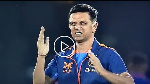 द्रविडला पाहून त्याला काय करायचे, किंवा काय सांगायचे आहे, हे कोणालाच समजले नाही. त्यावेळी हर्षा भोगले समालोचन करत होता. 'आम्हाला या हावभावांचा अर्थ कोणी समजावून सांगेल का?' असे म्हणत त्यानेही कोच राहुल द्रविड यांच्या या हावभावावर मजेशीर प्रतिक्रिया दिली. सध्या राहुल द्रविड यांचा हा व्हिडिओ सोशल मीडियावर चांगलाच व्हायरल होत असून त्यावर नेटकऱ्यांनीही जोरदार प्रतिक्रिया दिल्या आहेत.