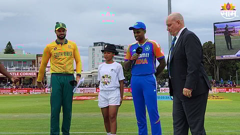 सलग दुसऱ्या सामन्यात दक्षिण आफ्रिकेने नाणेफेक जिंकून प्रथम गोलंदाजी करण्याचा निर्णय घेतला आहे. तर भारतीय संघ प्रथम फलंदाजी करताना दिसून येणार आहे. या सामन्यासाठी भारतीय संघाच्या प्लेइंग ११ मध्ये कुठलाही बदल करण्यात आलेला नाही. भारतीय संघ गेल्या सामन्यातील प्लेइंग ११ सह मैदानात उतरणार आहे. दर दक्षिण आफ्रिका संघात एक बदल करण्यात आला आहे.