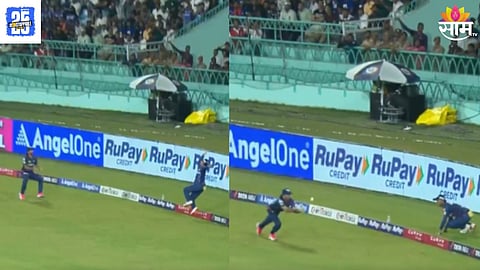 परंतु चेंडू जास्त दूर फेकल्या गेल्याने तो कॅच करू शकला नाही. त्याच दरम्यान बिश्नोईही बाउंड्रीवर पोहोचला होता. बदोनीने मैदानात परत फेकलेला चेंडू पाहून रवी बिष्णोईने हवेत उडी मारत झेल पकडला. त्या दोघांचं क्षेत्ररक्षण आणि झेल पाहून सगळेच अवाक् झाले. या कॅचचा व्हिडिओ सोशल मीडियावर खूप व्हायरल होतोय.