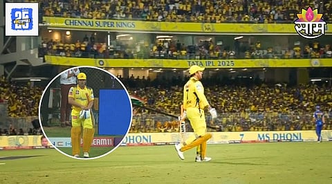 ८ बॉल्सवर ४ धावा शिल्लक असताना एमएस धोनी मैदानामध्ये उतरला. अठराव्या ओव्हरमध्ये ज्या वेळेस नमन धीर गोलंदाजी करत होता, तेव्हा ओव्हरच्या चौथ्या बॉलवर रविंद्र जडेजा रनआउट झाला. दीपक चहरच्या वेगवान थ्रोमुळे जडेजा बाद झाला. त्यानंतर महेंद्रसिंह धोनी फलंदाजी करण्यासाठी आला. धोनी आल्यावर चाहत्यांनी एकच जल्लोष केला.