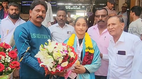 कल्याण डोंबिवली कुस्तीगीर संघटनेतर्फे नांदिवलीचे माजी सरपंच रामदास ढोणे,कुस्तीगीर संघटनेचे पंढरीनाथ ढोणे, वसंत साळुंखे यांच्यासह ग्रामस्थांनी आज वैष्णवी पाटील व सानिया देसले या विजयी खेळाडूंचे कल्याण रेल्वे स्थानकावर जंगी स्वागत केले.