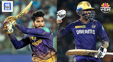 क्विंटन डी-कॉक आणि सुनील नारायण हे दोन केकेआरचे सलामीवीर मैदानात उतरले. पण दोघेही स्वस्तात आउट झाले. डी-कॉकने १ धाव केली. तर सुनील नारायण ७ धावांवर बाद झाला. त्यानंतर अजिंक्य रहाणे आणि अंगकृष रघुवंशी यांनी खेळ सावरण्याचा प्रयत्न केला. रहाणे ३८ धावांवर आउट झाला. रघुवंशीने अर्धशतकीय खेळी केली. व्यंकटेश अय्यर आणि रिंकू सिंहने मोर्चा सांभाळला. अय्यरने स्फोटक ६० धावा केल्या. रिंकूने ३२ धावा केल्या. व्यंकटेश अय्यर व्यतिरिक्त रहाणे, रघुवंशी आणि रिंकू या RRR च्या त्रिकूटामुळे केकेआरने २०० धावा केल्या.