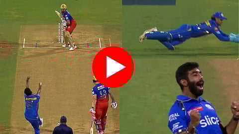 आयपीएल २०२४ स्पर्धेतील २५ वा सामना मुंबई इंडियन्स आणि रॉयल चॅलेंजर्स बंगळुरु या दोन्ही संघांमध्ये सुरु आहे. या सामन्यात मुंबई इंडियन्स संघाने नाणेफेक जिंकून प्रथम गोलंदाजी करण्याचा निर्णय घेतला आहे. दरम्यान प्रथम फलंदाजी करण्यासाठी आलेल्या रॉयल चॅलेंजर्स बंगळुरु संघाकडून विराट कोहली मोठी खेळी करणार असं फॅन्सला वाटलं होतं. मात्र जसप्रीत बुमराहने त्याला स्वस्तात माघारी धाडलं आहे. ज्याचा व्हिडिओ सध्या सोशल मीडियावर तुफान व्हायरल होत आहे.