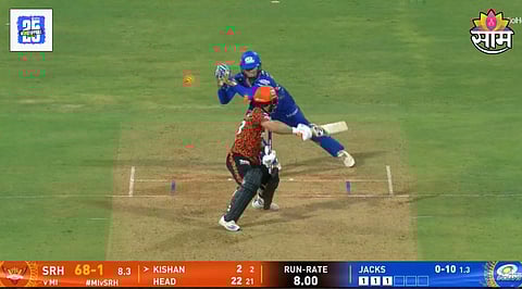 आठव्या ओव्हरमध्ये विल जॅक्स गोलंदाजी करण्यासाठी आला. तेव्हा इशान किशन आणि ट्रेव्हिस हेड फलंदाजी करत होते. दरम्यान ओव्हरच्या चौथ्या बॉलवर इशान किशनने पुढे येऊन खेळण्याचा प्रयत्न केला. या प्रयत्नांमध्ये त्याची विकेट पडली. बॉल इशानच्या टप्प्यातून सुटला आणि विकेटकिपर रायन रिकल्टनच्या हातात गेला. रायनने लगेच इशानला स्टंपआउट केले.