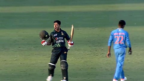 कर्णधार सहारन आणि आदर्शने तिसऱ्या विकेटसाठी ९३ धावा केल्या. चांगली फलंदाजी करत आदर्श ६२ धावांवर बाद झाला. तर कर्णधार उदय सहरनने ९८ चेंडूत ६० धावा केल्या. तर सचिन धस ४२ चेंडूत ५८ धावा करून बाद झाला. पाकिस्तानसाठी मोहम्मद जीशानने ४, उबैद शाह आणि अमिर हसनसाठी प्रत्येकी २-२ गडी बाद केले.