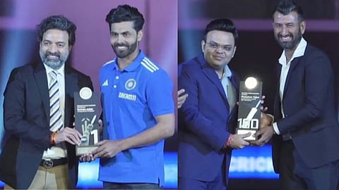 सौराष्ट्र क्रिकेट असोसिएशनतर्फे रविंद्र जडेजा आणि चेतेश्वर पुजाराचा सन्मान करण्यात आला. दोघेही देशांतर्गत क्रिकेटमध्ये सौराष्ट्र संघाचं प्रतिनिधित्व करतात. आता या दोघांचाच सन्मान का केला गेला? असा प्रश्न तुम्हालाही पडलाच असेल. चेतेश्वर पुजारा जेव्हा जेव्हा संघाबाहेर असतो तेव्हा तो सौराष्ट्र संघाकडून खेळतो. तर रविंद्र जडेजानेही सौराष्ट्र क्रिकेटला पुढे नेण्यात मोलाचं योगदान दिलं आहे. या दोन्ही स्टार खेळाडूंनी अंडर -१४ पासून सौराष्ट्र संघाचं प्रतिनिधित्व केलं आहे. (Cricket news in marathi)