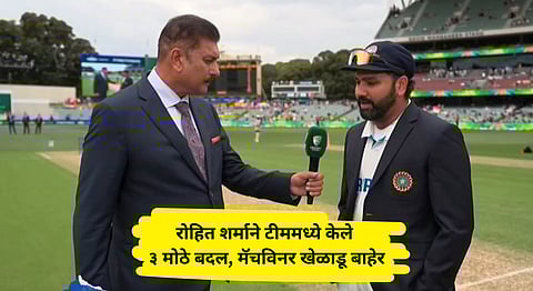 टीम इंडिया सध्या ऑस्ट्रेलियाच्या दौऱ्यावर असून या ठिकाणी बॉर्डर गावस्कर ट्रॉफी खेळवण्यात येतेय. आजपासून अॅडलेडवर या सिरीजमधील दुसरा सामना खेळवण्यात येणार आहे. या सामन्यामध्ये टीम इंडियाचा कर्णधार रोहित शर्माने टॉस जिंकून प्रथम फलंदाजीचा निर्णय घेतला आहे. दुसऱ्या टेस्टसाठी टीममध्ये ३ बदल करण्यात आले आहेत.