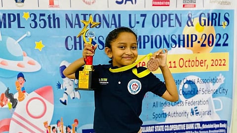 Tvesha Jain : अहमदाबाद येथे नुकत्याच झालेल्या सात वर्षाखालील मुलींच्या राष्ट्रीय बुद्धिबळ स्पर्धेत (National Chess Championship) मुंबईच्या (mumbai) त्वेशा जैन (Tvesha Jain) हिने ब्राॅंझ पदक पटकाविले. या स्पर्धेत त्वेशा जैन हिने नामांकित आणि विशेष म्हणजे मानांकित खेळाडूंना हरवलं आहे. या यशाचे श्रेय त्वेशाने तिच्या पालकांना आणि गुरुजनांना दिलं आहे. (Tvesha Jain Latest Marathi News)