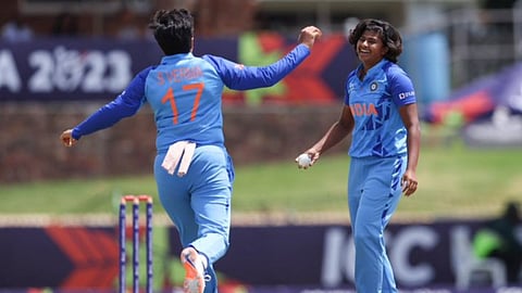 U-19 T20 World Cup: शेफाली वर्माच्या नेतृत्वाखाली भारताच्या १९ वर्षांखालील मुलींनी वर्ल्ड कप स्पर्धेच्या फायनलमध्ये दमदार कामगिरी केली आहे. उपांत्य फेरीत ऑस्ट्रेलियावर रोमहर्षक विजय मिळवणाऱ्या इंग्लंडची फायनलमध्ये घसरगुंडी झालेली पाहायला मिळाली. भारतीय खेळाडूंच्या गोलंदाजीपुढे इंग्लडची दाणादाण उडालेली पाहायला मिळाली.