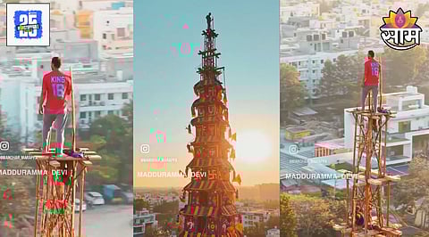 दरम्यान विराटच्या एका फॅनचा व्हिडीओ सोशल मीडियावर व्हायरल होत आहे. या चाहत्याने त्याच्या मित्रांसह बांबूच्या मदतीने बांधलेल्या एका गगनचुंबी इमारतीवर उभे राहून विराटला मानवंदना दिली आहे. या चाहत्याने विराटची १८ नंबरची जर्सी घातली आहे. त्याने आणि त्याच्या मित्रांनी हातात आरसीबीचा झेंडा घेत 'इ साल कप नम दे'चा नारा दिला आहे.