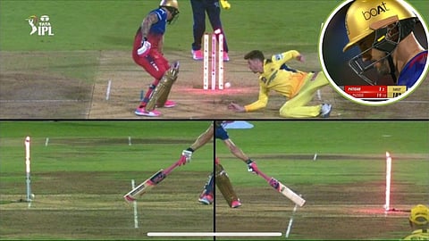 रॉयल चॅलेंजर्स बंगळुरू संघाची फलंदाजी सुरु असताना १३ वे षटक टाकण्यासाठी मिचेल सँटनर गोलंदाजीला आला होता. या षटकातील शेवटच्या चेंडूवर रजत पाटीदारने सरळ शॉट मारला. हा चेंडू मिचेल सँटनरच्या हाताला लागुन यष्टीला जाऊन धडकला. त्यानंतर सँटनरसह संपूर्ण संघाने रनआऊटची अपील केली. त्यानंतर अंपायरने हा निर्णय तिसऱ्या अंपायरकडे पाठवला. त्यानंतर तिसऱ्या अंपायरने निर्णय घेण्यासाठी थोडा वेळ घेतला. फाफची बॅट हवेत आहे, असं निदर्शनास येताच अंपायरने त्याला आऊट घोषित केलं. अंपायरने घेतलेल्या या निर्णयामुळे सोशल मीडियावर चर्चेला उधाण आलं आहे.