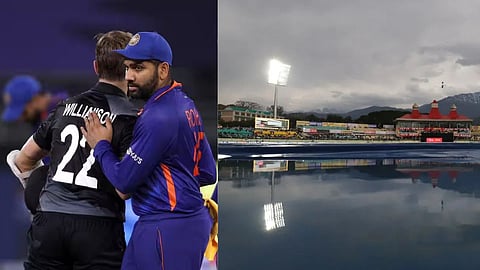 भारत-न्यूझीलंड (India vs New Zealand) सामन्याला विलंब होण्याची शक्यता आहे. कारण, हवामान खात्याने आज धरमशाला येथे पावसाचा अंदाज वर्तवला आहे. सकाळी १० ते दुपारी १ वाजेदरम्यान हलका ते मध्यम स्वरुपाचा पाऊस होऊ शकतो असं हवामान खात्याने सांगितलं आहे. जर हवामान खात्याचा अंदाज खरा ठरला. तर क्रिडाप्रेमींचा हिरमोड होऊ शकतो.