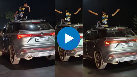 सध्या सोशल मीडियावर लोकप्रिय होण्यासाठी आणि लाईक्स मिळवण्यासाठी बहुतेकजण रील बनवत असतात. तर काही स्टंट करत असतात. अशा स्टंट करताना अनेकांनी जीवाशी येत असतं. परंतु सोशल मीडियावर लोकप्रिय होण्याचं क्रेझ जास्त असल्याने धोका असतानाही बहुतेक जण स्टंट करतात. अशाच एक व्हिडिओ नाशिकमधून व्हायरल होत आहे. एक मद्यधुंद तरुण कारच्या टपावर बसून व्हिडिओ काढत आहे.
