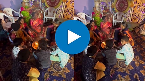 राज्यभर कडाक्याची थंडी पडलेली आहे. प्रत्येकजण थंडीपासून बचावासाठी अनेक उपाय शोधत असतात. अशातच व्हायरल व्हिडिओत आपण पाहू शकतो की, एका लग्न सोहळ्यात स्टेजवर नवरा-नवरीचे विधी सुरू आहेत. नवरा-नवरीच्या बाजूला घरातील काही सदस्य आपल्याला व्हिडिओत दिसत आहेत.