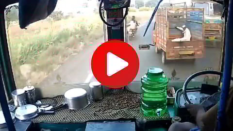ट्रकला ओव्हरटेक करून टेम्पो पुढे निघतो. यावेळी ट्रकच्या पुढे एक दुचाकी धावत असते. टेम्पो जेव्हा पुढे येतो तेव्हा भरधाव वेगात समोरुन देखील एक वाहन येत असतं. यामुळे टेम्पोचा धक्का दुचाकीला लागतो. यामुळे पती पत्नी दोघेही खाली पडतात. मागून येणारा ट्रक चालक आपला ट्रक तातडीने थांबवतो आणि त्यांना वाचवण्यासाठी धाव घेतो. सुदैवाने यात कोणतीही जीवितहानी झालेली नाही.
