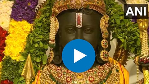 आज आभूषण, फुलं आणि तुळशीच्या पानांनी सजवलेली, पिवळी वस्त्रे धारण केलेली रामलल्ला मूर्तीची पहिली झलक समोर आली आहे. सर्व आभूषणांमध्ये मूर्तीचं रुप आणखी खुलून आलं आहे. मूर्तीची पहिली झलक पाहून भाविकांच्या मनात शांती आणि प्रसन्न भावना निर्माण झालीये.