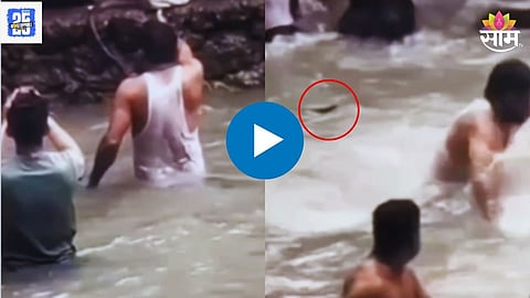 असाच एक थरारक प्रकार नुकताच समोर आला आहे. काही पर्यटक (Tourist) धबधब्याजवळील पाण्यात भिजण्याचा आनंद घेत असतानाच त्यांच्या समोर अचानक एक भलामोठा साप येतो. पाण्यात डुंबणाऱ्या लोकांना आधी काहीच कळाले नाही. मात्र एका व्यक्तीने सापाची हालचाल पाहिली आणि जोरजोरात आरडाओरड सुरू केली. काही क्षणांतच सर्वत्र गोंधळ उडाला.