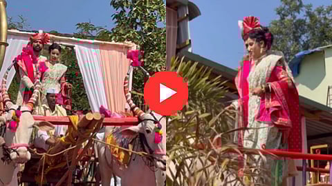 या व्हायरल व्हिडिओमध्ये तुम्ही पाहू शकता की, लग्नाच्या मंडपात नवरा- नवरी बैलगाडी घेऊन जाताना दिसत आहेत. यावेळी दोघेही महाराष्ट्रीयन पोषाखात खूपच सुंदर दिसत आहेत. नवरीने नऊवारी साडी अन् दागिने असा खास लूक केला होता. नवरीच्या हातात बैलांची दोरी होती. सजवलेल्या बैलगाडीतून नवरा- नवरीची झालेली खास एन्ट्री पाहून पाहुणे मंडळीही अवाक् झाली.