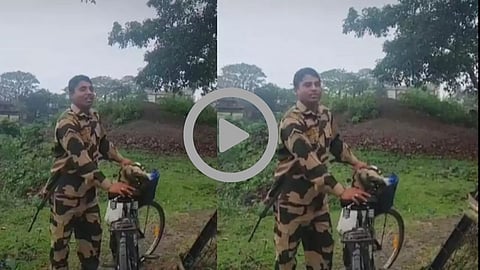 सोशल मीडियावर अनेक व्हिडिओ व्हायरल होत असतात, मात्र यामधील काही व्हिडिओ असे असतात ज्यांना बघून आपण अश्चर्यचकित होतो. असाच एक व्हिडिओ सध्या ट्रेंडिंगवर आहे. त्रिपुरामधील उनोकोटी जिल्ह्यात कैला हे शहर भारत-बांगलादेशच्या सिमेवर आहे. या सिमेवर बऱ्याचवेळा जवानांमध्ये भांडणं, हल्ले होतात. दोन देशांमधील सिमेवर नेहमीच तनावाचं वातावरण असतं. पण रविवारी सकाळी मनाला भिडणारा एक व्हिडिओ समोर आला आहे. या व्हिडिओमध्ये बीएसएफचा एक जवान त्याच्या मघुर आवाजामध्ये मागच्या वर्षी चित्रपटगृहात प्रदर्शित झालेल्या 'जरा हटके जरा बचके' या चित्रपटातलं सुप्रसिद्ध झालेलं गाणं 'तु है तो मुझे फिर और क्या चाहिये' हे गाणं गातांना दिसतोय.