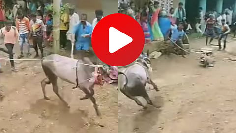 प्रत्येक गावात दरवर्षी बैलगाडा शर्यत असतेच. या शर्यतीमध्ये शेतकरी आपल्या बैलांना मस्त सजवतात आणि शर्यतीत उतरवतात. या शर्यतीमध्ये एखादा बैल पिसाळला तर त्याला शांत करताना भल्या भल्यांना घाम फुटतो. सध्या सोशल मीडियावर असाच एका बैलाचा व्हिडीओ व्हायरल झाला आहे. यात बैलामुळे नागरिकांची मोठी पळापळ झालीये. ('साम टीव्ही'चं व्हॉट्सअँप चॅनल जॉईन करण्यासाठी येथे क्लिक करा)