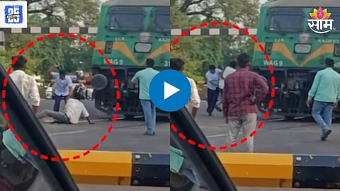 loco pilot beats man: दारू पिऊन रेल्वे रुळावर लोळत असलेल्या व्यक्तीमुळे रेल्वेगाडी थांबवावी लागल्याचा प्रकार समोर आलेला आहे. ज्याचा व्हिडिओ आता सोशल माध्यमांवरही मोठ्या प्रमाणात व्हायरल झालेला आहे. चंद्रपूर जिल्ह्यातील मूल सिंदेवाही मार्गावरील राजोली क्रॉसिंगवर हा सगळा प्रकार घडला आहे.