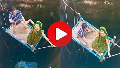 व्हिडीओमध्ये तुम्ही पाहू शकता की, एक विवाहीत जोडपं रिल व्हिडीओ बनवत आहेत. रोमान्स आणि डान्स करत त्यांना हा रिल व्हिडीओ शूट करायचा होता. आता त्यासाठी यांनी झोका बांधायचं ठरवलं. मात्र हा झोका त्यांनी झाडाला नाही तर विहिरीला बांधला आहे. झाडांचा आधार घेत विहिरीच्या मधोमध हा झोका बांधण्यात आला आहे. खोल विहिरीत जाड दोऱ्याच्या सहाय्याने त्यांनी थेट एक चार पायांची खाट बांधली आहे.