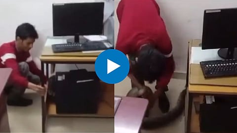 व्हायरल होत असलेल्या व्हिडिओ (Video) बेलापूरमधीलो पोलिस स्टेशन दिसून येत आहे. ज्या पोलिस स्टेशनमध्ये एका खोलीत एक टेबल आहे. याच टेबलच्या खाली तुम्ही नीट पाहिले तर तुम्हाला वेटोळे मारुन बसलेला एक भला मोठा अजगर (Python) दिसून येईल. मात्र काही वेळात पोलिस स्टेशनमध्ये सर्प मित्र येऊन त्या अजगराला सुरक्षितीरित्या पकडून नैसर्गिक अधिवासात सोडले.