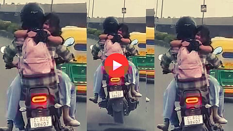 या व्हिडिओमध्ये तुम्ही पाहू शकता की, तरुण- तरुणी चालू गाडीवर स्टंट करताना दिसत आहेत. तरुणाने तरुणीला गाडीच्या टाकीवर बसवले आणि तिला मिठी मारायला सुरूवात केली. तरुणीही त्याला चालू गाडीवर मिठी मारताना दिसत आहे. हे धक्कादायक कृत्य भर वर्दळीच्या ठिकाणी चालू आहे.