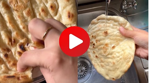 रात्रीची उरलेली पोळी, भाकरी आणि नान असे पदार्थ सकाळी फार कडक होतात. कडक झालेला नान किंवा पोळी खाताना दात दुखूलागतात. त्यामुळे नान बारीक असणे गरजेचं असतं. यासाठी एका तरुणीने कडक झालेला नान नळाखाली पाण्यात भिजवत ठेवला आहे. नान पाण्यात भिजवून घेतल्यानंतर तरुणीने त्यावर तेल आणि बटर लावून तव्यावर शेकून घेतलं आहे.