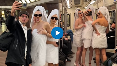 मेट्रोतील एका व्हिडिओमध्ये चार मुली मेट्रो स्टेशनवर टॉवेल गुंडाळून आणि चष्मा लावून उभ्या असताना दिसत आहेत. मेट्रो स्टेशनवर त्यांच्या अनोख्या शैलीने इतर प्रवाशांना आश्चर्याचा धक्का दिला. मेट्रोमध्ये चढल्यानंतर त्या मुली सेल्फी काढू लागल्या. त्यांची स्टाईल पाहून इतर प्रवाशांनी आपल्या मोबाईलमध्ये फोटो आणि व्हिडिओ काढायला सुरुवात केली.