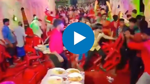 व्हिडीओमध्ये तुम्ही पाहू शकता की, लग्नासाठी जेवणाच्या मंडपात नवरा आणि नवरी दोन्हीकडील माणसं जमली आहेत. जेवताना आमच्या भाजीत पनीर नाही म्हणून या पाहुण्यांमध्ये आधी बाचाबाची होते. काही वेळातच त्यांच्यातल्या या भांडणांना हाणामारीचं स्वरुप मिळतं. वधू आणि वर दोन्ही बाजूच्या व्यक्ती एकमेकांना मारहाण करू लागतात.