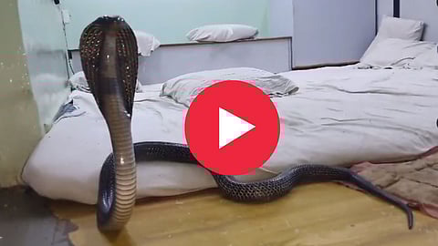 घटनेबाबत मिळालेल्या अधिक माहितीनुसार, राजस्थानच्या कोटा येथे ही घटना घडली आहे. येथे एका खोलीत सफेद रंगाच्या गाद्या आणि उशा ठेवल्या होत्या. रात्रीच्यावेळी झोपण्यासाठी गेलेल्या व्यक्तीने गाद्यांवरील उशी दूर केली तेव्हा तेथून झपकन एक भयावह किंग कोब्रा फना काढून उभा राहिला.