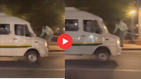 व्हिडिओमध्ये (Viral Video) तुम्ही पाहू शकता की, एक व्यक्ती पांढऱ्या रंगाच्या मिनी व्हॅनच्या बोनेटला लटकत आहे. तो माणूस ड्रायव्हरला गाडी थांबवायला सांगत आहे पण तो व्हॅन थांबवत नाही. ही घटना 17 डिसेंबरच्या रात्री घडल्याचे सांगण्यात येत आहे.