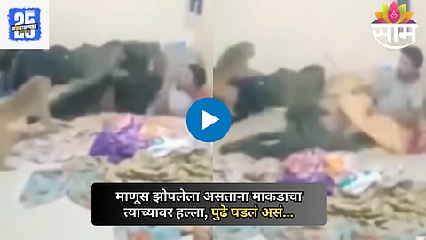 एक व्हायरल व्हिडिओ सध्या सोशल मीडियावर धुमाकूळ घालत आहे, ज्यामध्ये एक माणूस घरातील खोलीत आरामात झोपलेला दिसतो. त्याला माकडाच्या येण्याची काही कल्पनाही नाही. माकड खोलीत शिरतो आणि त्या माणसाला गोंधळात टाकतो. माकड थेट त्या माणसाकडे जातं आणि त्याला चापट मारतं.
