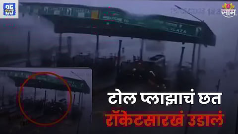 मुसळधार पाऊस आणि सोसाट्याचा वारा यामुळे अवघ्या ७ सेकंदांत टोल प्लाझाचं छत अचानक हवेत उडालं, जणू काही पतंग उडावी. छत कोसळलं मात्र, त्यावेळी सुदैवाने तिथे वाहनांची गर्दी नव्हती, त्यामुळे मोठी जीवितहानी टळली. ही घटना किती भीषण होती हे व्हिडीओ पाहूनच लक्षात येईल.