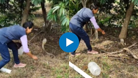 व्हायरल होत असलेल्या व्हिडिओत तुम्ही पाहू शकता की, घरा बाहेरील परिसर दिसत आहे. जिथे एक तरुणी भल्यामोठ्या सापाला पकडताना दिसत आहे. मात्र साप अतिशय चपळ दिसत आहे. भना काढून साप अतिशय वेगात सर्वत्र पळत आहे. मात्र साप पकडण्यासाठी त्या तरुणीला अतिशय मेहनत करावी लागत आहे. मात्र शेवटी अतिशय मेहनतीने तरुणी सापाला पकडते आणि एका प्लास्टिकच्या डब्ब्यात भरते. सर्व व्हिडिओ तेथिल एका व्यक्तीने मोबाईलमध्ये कैद केलेला आहे.