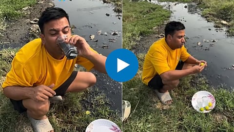 व्हायरल(Viral) होत असलेल्या व्हिडिओत तुम्हाला एक तरुण दिसत आहे. जो गटारीच्या पाण्याच्या बाजूला बसलेला आहे. तरुणाच्या बाजूला तुम्हाला एक प्लेट ही दिसत आहे ज्यात काही लिंबू आणि ग्लास आहेत. मात्र काही वेळात तरुण एक लिंबू कापतो आणि त्या ग्लासात टाकतो आणि गटारीतील पाणी पण त्यात टाकतो आणि सर्व घाणेरड पाणी लिंबू सरबत म्हणून पितो. सर्व व्हिडिओ(Video) त्याच्या सोबत असलेल्या व्यक्तीने मोबाईमध्ये कैद केलेला आहे.