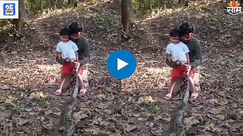 palghar Shocking News: पालघरमधून एक धक्कादायक प्रकार समोर आला आहे, जिथे एका सर्पमित्राने अवघ्या तीन ते चार वर्षांच्या चिमुकल्याच्या हाती भलामोठ्या अजगराची शेपटी देऊन जीवघेणा स्टंट केल्याचा प्रकार घडला आहे. सध्या सोशल मीडियावर या प्रकाराचा व्हिडिओ तुफान व्हायरल झालेला आहे.