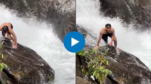 व्हायरल (Viral) होत असलेल्या व्हिडिओ तुम्हाला एक धबधबा दिसून येत आहे. या धबधब्यावरुन पाण्याचा जोरदार प्रवाह खाली कोसळत आहे. त्यात एक तरुण धबधब्याच्या एका दगडावर फोटो काढण्यासाठी येत असतो. मात्र पाण्याचा खाली कोसळणारा जोरदार प्रवाह आणि दगड घसरणारे झाल्याने तरुण ही त्या दगडावरुन घसरतो, मात्र नशीब चांगले होते म्हणून तरुण उंच अशा धबधब्यावरुन खाली कोसळता कोसळता बचावला जातो. सर्व व्हिडिओ तरुणाच्या मित्राने कॅमेऱ्यात त्याचा व्हिडिओ(Video) आणि फोटो काढत असताना कैद केला आहे.