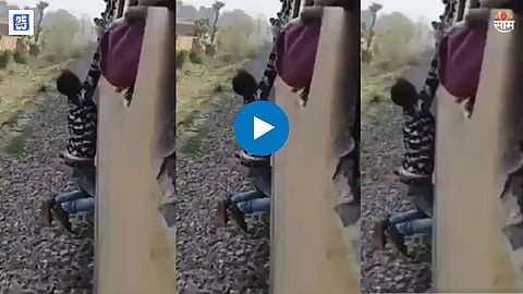 व्हायरल(Viral) होत असलेल्या व्हिडिओत तुम्हाला एक धावती ट्रेन दिसत आहे.ज्या धावत्या ट्रेनच्या खिडकीला दोन्ही हातांनी पकडून एक तरुण बाहेर लटकलेला आहे.अनेकवेळा लटकल्याने तरुणाचे हात दुखत असल्याते दिसत आहे. त्यातच तरुणाचा हा धक्कादायक प्रवास एका व्यक्तीने मोबाईलमध्ये रेकॉर्ड केलेला आहे.मात्र त्यानंतर व्हिडिओत पाहिले तर ट्रेन थांबली जाते आणि तो तरुण खाली जमिनीवर उतरता दिसतो.
