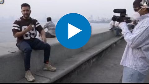 व्हायरल झालेल्या व्हिडिओत आपल्याला दिसत आहे की,भारताचा स्टार फलंदाज सूर्यकुमार यादव मुंबईच्या मरीन ड्राईव्हवर फेरफटका मारण्यासाठी उतरला होता. आपल्याला कोणी ओळखू नये म्हणून हातावरचे टॅटू लपवण्यासाठी त्याने फुल हाताचा शर्ट घातला आहे. त्यानंतर तो आपला चेहरा लपवण्यासाठी मास्क लावताना दिसून येत आहे. मग काय कॅमेरा आणि माईक घेऊन सूर्याने थेट मरीन ड्राईव्ह गाठलं.