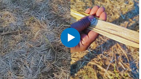 Viral Video: लातूर जिल्ह्यात मागील काही दिवसापासून थंडीचा जोर वाढू लागला आहे. जिल्ह्यातल्या ग्रामीण भागातील तापमानाचा पारा दिवसेंदिवस घटत चालला आहे.दरम्यान याचा परिणाम औसा तालुक्यातल्या नकुलेश्वर बोरगाव शिवारात पाहायला मिळालाय.आज पहाटे दाट धुक्याची चादर पाहायला मिळाली, तसेच शिवारात गवतावर बर्फाची चादर देखील पाहायला मिळाली आहे.
