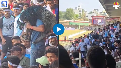 Funny Incident Video: हो, हे प्रकरण भन्नाटचं आहे! "कोल्हापुरकरांचा काही नेम नाही" ही म्हण अक्षरशः खरी ठरवणारी घटना नुकतीच समोर आली. फुटबॉलचा सामना पाहण्यासाठी एक चाहत्याने बकरीला थेट खांद्यावर घेऊन स्टेडियममध्ये प्रवेश केला आणि सर्वांचं लक्ष वेधून घेतलं. हे दृश्य पाहणाऱ्यांच्या डोळ्यांवर विश्वासच बसेना! आता या घटनेची चर्चा सगळीकडे सुरु आहे. सोशल मीडियावरही याचा व्हिडिओ तुफान व्हायरल होत आहे.