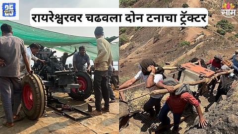 Pune Viral Video: पुणे जिल्ह्यातील रायरेश्वर पठारावर शेतकऱ्याच्या जिद्दीने नवा इतिहास घडवला आहे. सुमारे चार हजार सहाशे फूट उंचीवर, डोंगरकड्यांतून दोन टन वजनाचा ट्रॅक्टर उचलून नेण्याची अवघड मोहीम यशस्वी करण्यात आली आहे.