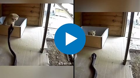 सोशल मीडिया हे असं प्लॅटफॉर्म आहे ज्याठिकाणी एकादा फोटो असो वा व्हिडीओ तो झटक्यात व्हायरल होत असतो. या व्हिडीओ आणि फोटोंची चर्चा झाल्याशिवाय राहत नाहीत. या व्हिडीओंमध्ये प्राण्यांचे देखील व्हिडीओ असतात. यामधील काही व्हिडीओ कधी प्राण्यांच्या भांडणांचे असतात तर कधी त्यांनी केलेल्या चांगल्या कृतीचे असतात. कधीकधी हे प्राण्यांचे व्हिडीओ आपल्याला पोट धरून हसायला देखील लावतात तर कधी इमोशनल देखील करतात. आता सध्या सोशल मीडियावर नाग आणि मांजराच्या भांडणाच्या व्हिडीओने सर्वांचे लक्ष वेधले आहे. ('साम टीव्ही'चं व्हॉट्सअॅप चॅनल जॉईन करण्यासाठी येथे क्लिक करा)