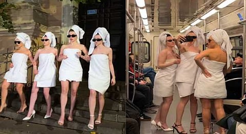 टॉवेल गुंडाळून मेट्रोमध्ये चढल्यानंतर अनेक लोकं या मुलींसोबत सेल्फी काढताना आणि व्हिडिओ बनवताना दिसले. अर्थात, काही लोक त्यावर विनोद करत होते आणि हसत होते, परंतु काही लोक हे अपमानास्पद देखील मानत होते.