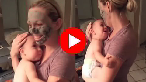 व्हायरल व्हिडिओमध्ये तुम्ही पाहू शकता की, एका महिलेने चेहऱ्याला चारकोलमधील फेसमास्क अप्लाय केलं आहे. त्यानंतर तिने आपल्या बाळाला उचलून घेतलंय. आईच्या कुशीत असल्यावर ही आपलीच आई आहे की भूत आहे असं बाळाला वाटत आहे. चेहरा पाहिल्यावर ही आई नसून दुसरंच कोणीतरी असल्याचा विचार त्याच्या मनात येत आहे.