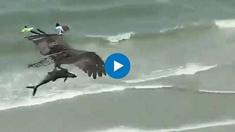 या व्हिडीओमध्ये एका पक्षाने चक्क शार्क माशाची शिकार केल्याचं दिसतंय. या शॉकिंग व्हिडिओमध्ये समुद्रकिनाऱ्यावर एक मोठा शिकारी पक्षी एका माशाला आपल्या धारदार पंज्यात पकडताना दिसत आहे, जे पाहून तिथे उपस्थित असलेले लोकही थक्क झाले.
