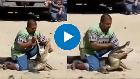 सध्या व्हायरल होत असलेल्या व्हिडिओमध्ये देखील तुम्ही पाहू शकता की, एका व्यक्तीने मगर पाळली आहे. मगर घेऊन तो स्वतः तिच्यासोबत स्टंट करत आहे. कितीही केलं तरी मगर हिंस्त्र आहे, ती मांस खाते. मात्र सोशल मीडियावर हीट होण्यासाठी आणि व्हायरल होण्यासाठी कोण काय करेल आणि काय नाही याचा काही नेम नाही. या व्यक्तीने देखील असाच काळजात धडकी भरवणारा स्टंट केला आहे.